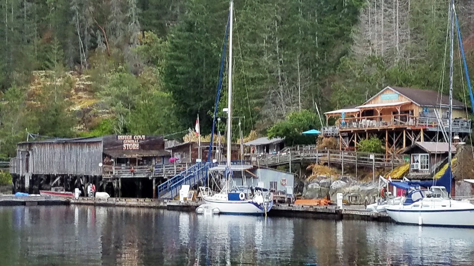 Refuge Cove is a rustic, whimsical, remote harbor, that must generate its own power and have all supplies shipped.